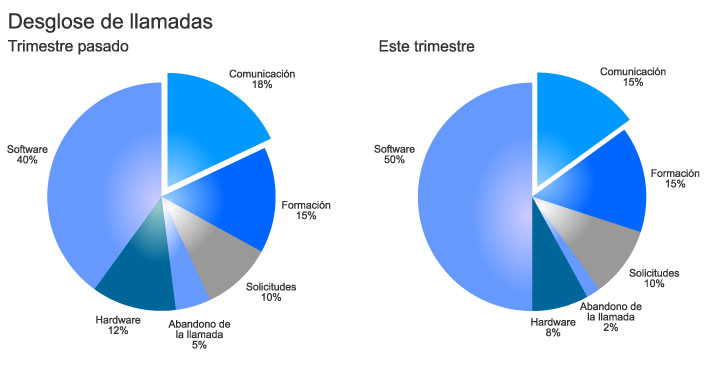 Las llamadas de software han pasado del 40% al 50%. Tendrás que averiguar si la causa de este incremento se debe a la implementación de una nueva aplicación o actualización de software y así tomar medidas para que se reduzcan las llamadas.